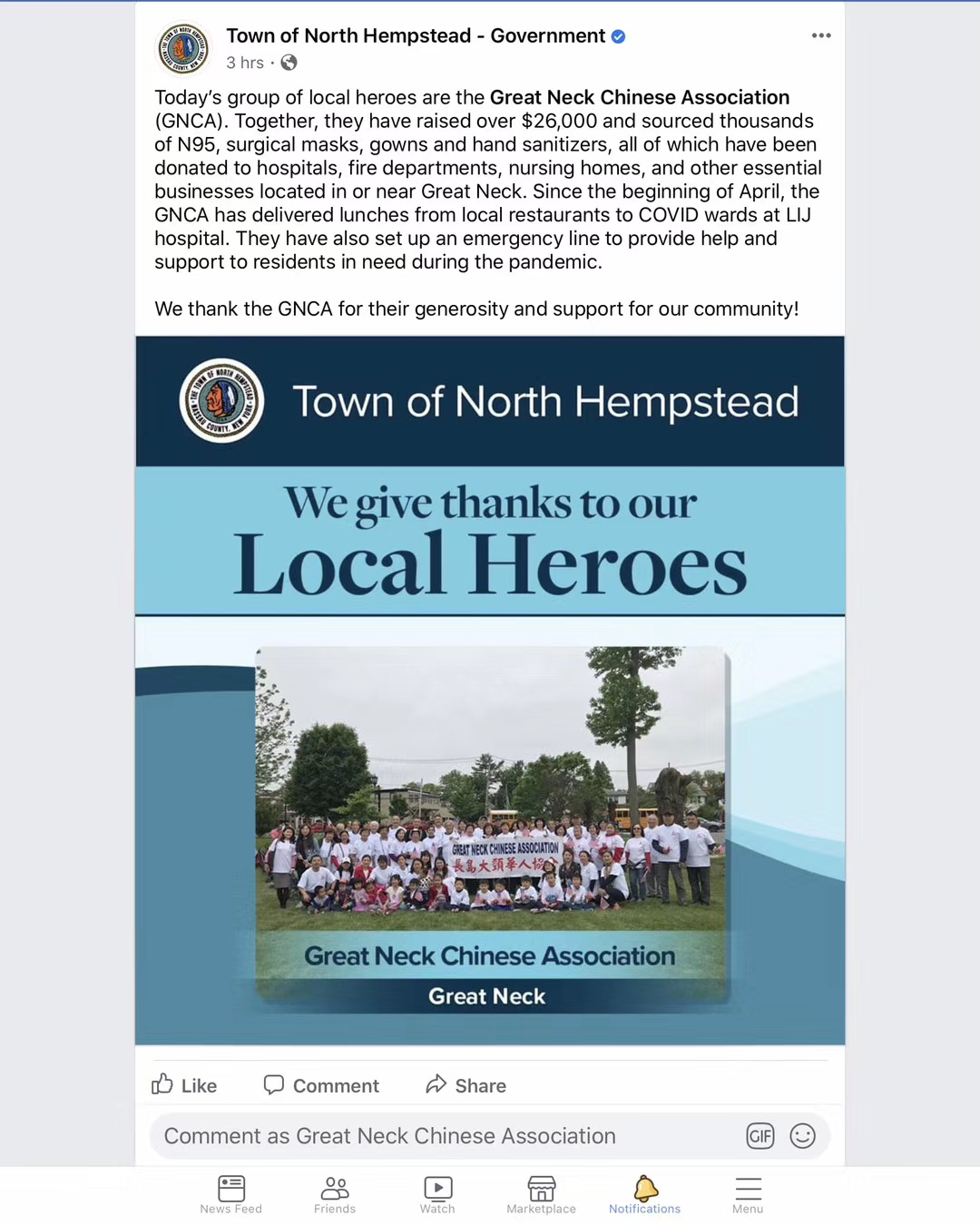 Town of North Hempstead awarded GNCA 'Local Heroes'